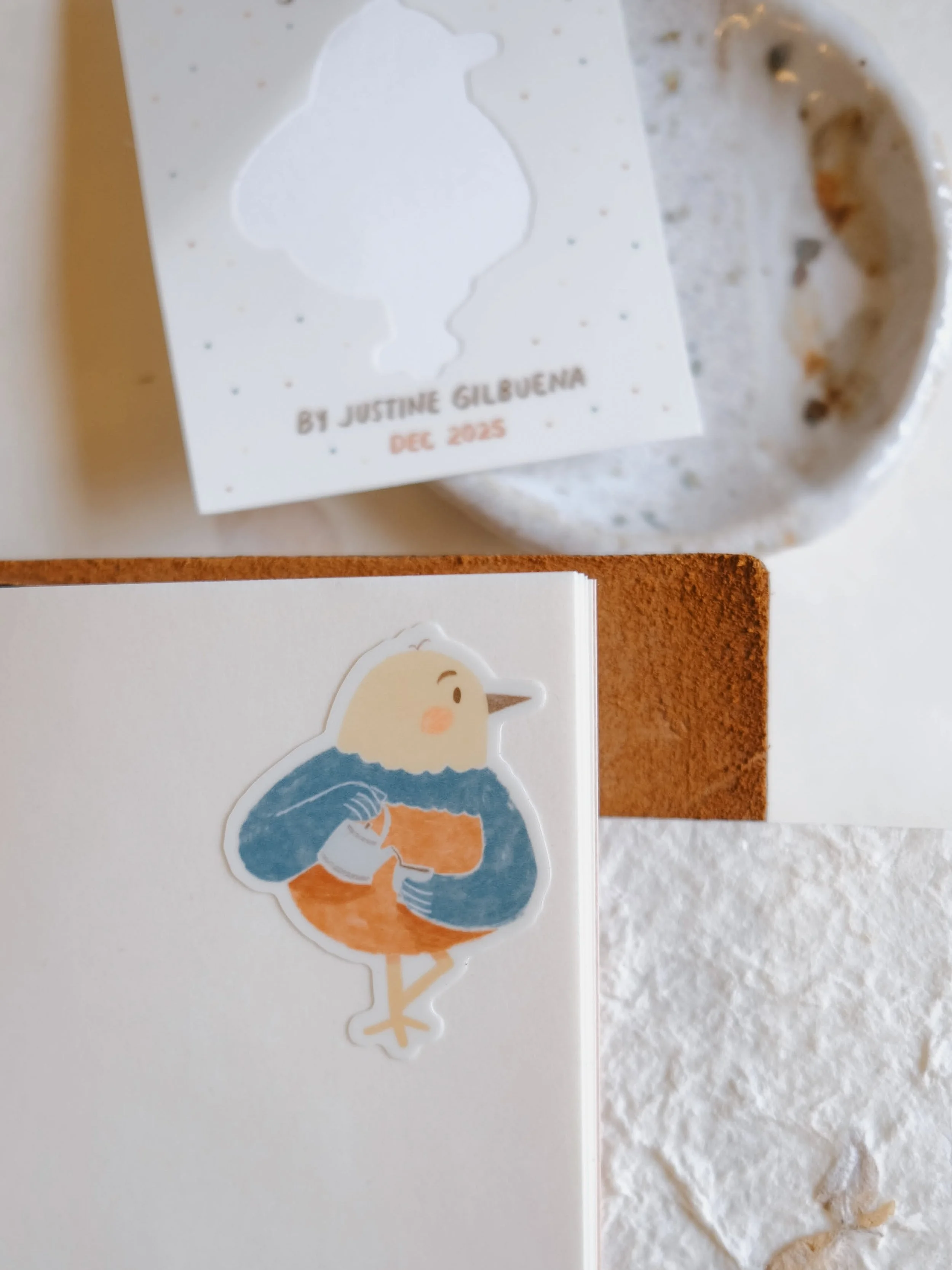 Dec 2025: Winter Hot Pot Postcard, Tea Bird Sticker, Winter Bookmark
